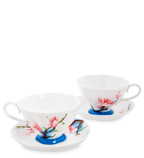 Продажа сувениров из фарфора Посуда из фарфора коллекции JS Дизайн Цветущая сакура JS-02 Чайный набор на 2 перс. "Цветущая сакура" (Pavone)